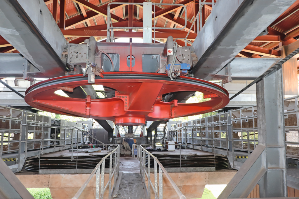 *) Auch die 10er-Kabinenbahn von Poma im serbischen Zlatibor mit einer Länge von 8.866 m ist rekordverdächtig. Diese Bahn hat zwar nur einen Antrieb in der Zwischenstation Ribničko jezero, verfügt jedoch über zwei Förderseilschleifen, die mit einer zweirilligen Antriebsscheibe angetrieben werden.