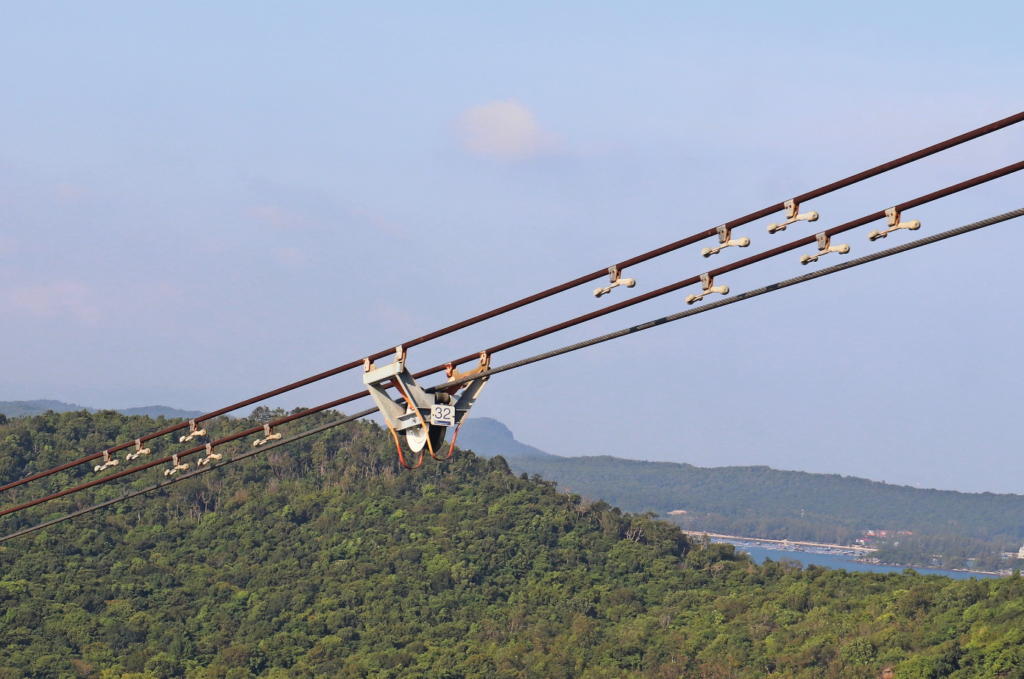 Der Höhenunterschied zwischen den Stationen beträgt zwar nur 6 m, aber die Stützen Nr. 2 bis 5 erreichen eine Höhe von 120 bis 164 m (Stütze Nr. 4), sodass sich während der Fahrt ein herrlicher Blick auf die Inselgruppe und die Meereslandschaft eröffnet. Das längste Spannfeld von 1.998 m Länge befindet sich zwischen den Stützen Nr. 4 und 5. Auf der Trasse sind 74 Seilreiter angeordnet, auf den Stützen Nr. 1 bis 5 und auf den Seilreitern in den drei Spannfeldern zwischen den Stützen Nr. 2 und 5 gibt es insgesamt acht Windmessgeräte. Die Firma Fatzer lieferte für diese Bahn vier Tragseile mit einer Länge von 8.275 m und zwei 8.262 m lange Zugseile, die mit zwei Spleißen zu einer Seilschleife verbunden wurden. Die Tragseile sind in beiden Stationen trommelverankert, das Zugseil ist in der Station Hòn Thơm mit 50 t gewichtsgespannt. Bei schwachem, laminarem Wind (ca. 1 bis 7 m/s), der hier fast ununterbrochen weht, entstehen hinter den Seilen Luftwirbel. Diese verursachen äolische Schwingungen – das Seil beginnt mit hoher Frequenz, aber geringer Amplitude zu schwingen. Um diese Schwingungen zu dämpfen, wurden an den Tragseilen links und rechts der Seilreiter Stockbridge Schwingungsdämpfer (auch „Hundeknochen“ genannt) angebracht. Ohne diese Schwingungsdämpfer würde es zu Materialermüdung an den Befestigungspunkten der Seilreiter an den Tragseilen kommen, was bis zum Bruch einzelner Seildrähte führen könnte. Der Unterflurantrieb in der Station An Thới besteht aus zwei, hinsichtlich Drehmoment und Geschwindigkeit synchronisierten Motorgruppen, die zwei Antriebsscheiben antreiben. Jede Motorengruppe besteht aus zwei 630-kW-Motoren, Betriebsbremsen und Getriebe. In der Antriebsstation befindet sich noch eine Gegenscheibe, so dass der gesamte Umschlingungswinkel des Zugseils an beiden Antriebsscheiben etwas mehr als 360º beträgt. Neben dem üblichen Notantrieb für den Fall eines Stromausfalls sind beide Antriebsscheiben und die Gegenscheibe mit hydrostatischen Notantrieben ausgerüstet. In der Gegenstation Hòn Thơm gibt es ebenfalls drei Zugseilscheiben, zwei sind fixe Umlenkscheiben und die dritte Seilscheibe wird gewichtgespannt. Die Bahn verfügt über das System der integrierten Räumung, bei dem durch zusätzliche Sicherheitseinrichtungen und redundante Bauteile bei allen denkbaren Störungen, wie auch bei Lagerschäden an den Seilscheiben, alle Kabinen in die Stationen gebracht werden können, ohne die Fahrgäste auf der Strecke bergen zu müssen.
